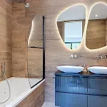 La terrazza vanta una vista sulle montagne. Il bagno comprende anche una cabina doccia.
